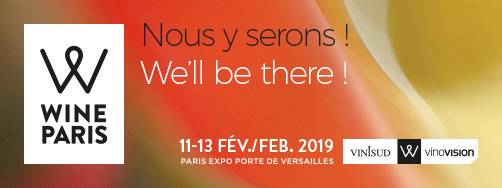 On vous retrouve avec plaisir pour cette première édition du salon Wine Paris, au Parc des Expositions, Porte de Versailles, du lundi 11 au mercredi 13 février 2019.
